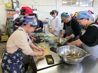 11月22日(木)松南小学校4年生73名が本校に来校し「白山米粉」を使用した米粉クッキーを食品科学コース2年生と一緒に作りました。米粉クッキーは食品科学研究会が開発したもので、白山米粉だけでなく翠星高校産の小麦をひいてつくった小麦全粒粉、県内産の鶏卵を用いて作られた地元の恵みたっぷりのクッキーです。