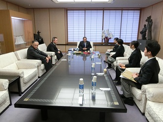 1月24日(木)食品科学研究会とPAN-BUの生徒が、白山市長に松任梨を使った新商品の完成を報告しました。新商品は「松任梨のコンポート」、「松任梨のパン(3種類)」です。白山市長には「松任梨をうまく生かす工夫がされている。白山市のブランド商品に育ってほしい」と喜んでいただけました。
