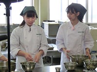 本校の人気商品「翠星クッキー」の生地を使って、手型クッキーづくりの実習を体験しました。