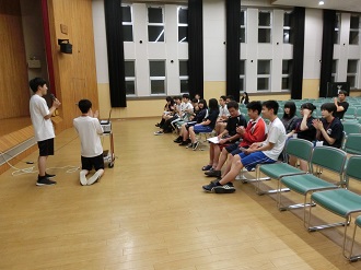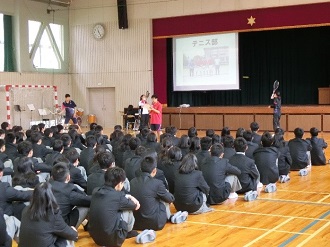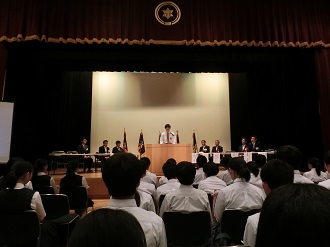 4月10日(水)、新入生オリエンテーションが行われました。今回は農業クラブ、生徒会、部活動・研究会活動紹介、2・3年生との対面式という内容で行いました。