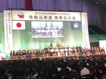 10月22日(水)~24日(木)に宮城・福島・山形の3県で「第70回日本学校農業クラブ全国大会 南東北大会」が行われました。この大会は農業高校生の甲子園とも呼ばれています。本校からはプロジェクト発表会分野Ⅲ類に6名、平板測量競技会に3名、農業鑑定競技会に4名が出場し、また石川県連会長は秋季代議員会に参加し、式典では旗手を務めました。