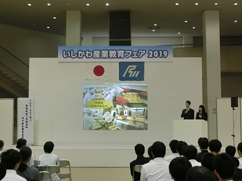 報告が遅れましたが、10月20日(日)に、石川県産業展示館2号館で、「いしかわ産業教育フェア2019」が開催されました。本校生徒は、ステージ発表(農業部会研究発表・産学連携人材育成事業)、体験コーナー(丸いもマフィン教室)、農産物の販売、農業高校の展示紹介など、たくさんの企画の発表・運営を行い、来場者に、農業高校の魅力をアピールしました。
