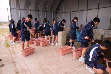 慣れない実習に戸惑っている生徒もいましたが、皆楽しんで植え付けていました。