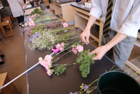 5月19日(金) 福岡千恵さんをお招きし、フラワーアレンジメントの練習を行いました。
