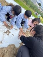 そこで、第2弾として、生物資源コース園芸福祉分野の3年生が、造成した花壇の「石拾い」と「土入れ」を行いました。
