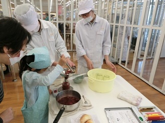 1月26、27日、食品科学コースの3年生が「ニュー三久 金沢西念店 ふれ愛広場」にて、「親子イチゴジャム教室」を開催しました。イチゴジャム教室では、瓶の殺菌の仕方からジャム完成の見極め方まで本格的な作り方が学べます。