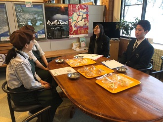 1月8日(火)、食品科学コースの生徒たちが、道の駅瀬女の中にある「山のパン屋さん瀬女」に、自分たちが開発した松任梨のパンの販売依頼に行きました。
