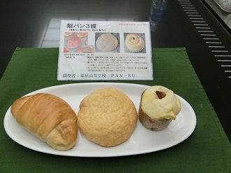 お店で試作していただいた3種類の梨パンを試食しながら、今後どのように販売をしていくか打ち合わせをしました。現場の方のお話を聞ける機会は初めてだったため、パン製造について様々な質問ができ、とても良い刺激を受けました。お店に並ぶ日が待ち遠しいです。