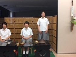 7月16日(月)、茶道部員16名は松任高校と合同で緑陰の茶会を担当しました。場所は野々市市文化会館フォルテで、約300人の来場客の皆さんにお茶をふるまいました。石川県内の小・中・高校の茶道部の皆さんがご来場くださいました。