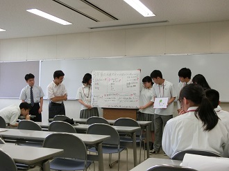 午後は3つのグループに分かれてワークショップを行いました。それぞれのグループに与えられたテーマについて話し合い、まとめ、発表を行いました。他校と協力して話し合うことができ、良いワークショップができたと思います。