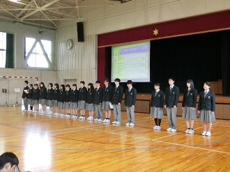 「食品科学研究会Ⅱ PAN-BU」が参加して行われました。日頃のプロジェクト活動の内容を分かりやすく発表していました。また、参観者から様々な質問や意見を受けて、生徒たちは新たな方向性を見出すことができました。終業式