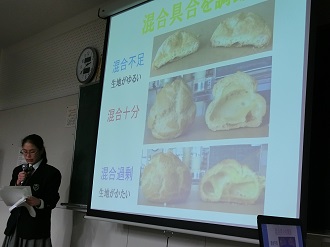 1月24日(木)食品科学研究会とPAN-BUの生徒が、白山市長に松任梨を使った新商品の完成を報告しました。新商品は「松任梨のコンポート」、「松任梨のパン(3種類)」です。白山市長には「松任梨をうまく生かす工夫がされている。白山市のブランド商品に育ってほしい」と喜んでいただけました。