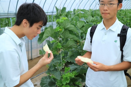 7月25日(火) 産業連携で生物科学コースの3年生がメロン農家の荒川さんの農場見学に行きました。
