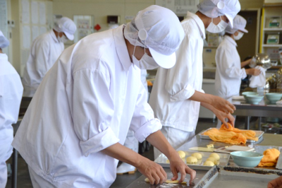ロールパン製造の実習が行われています。