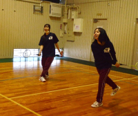 卓球場では8の字縄跳びをクラス毎男女別全員で5分間、跳んだ数で競い合いました。