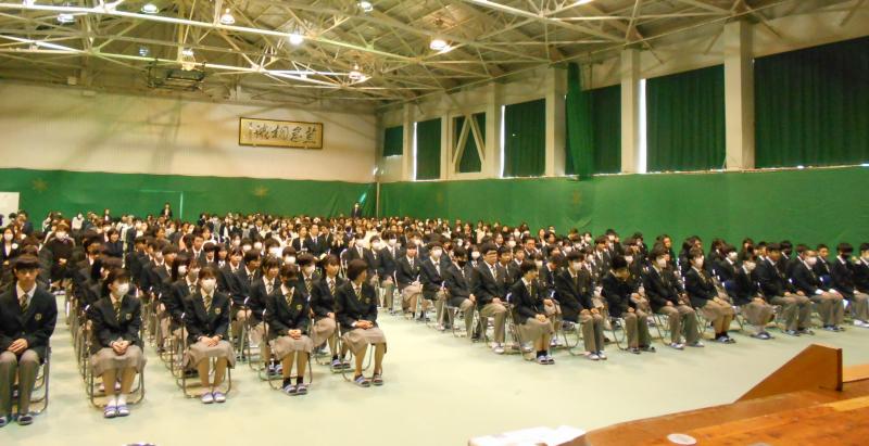 続いて始業式が行われ、谷正一校長先生の訓話の中で、 第一体育館の壁にかけられている書についてお話がありました。