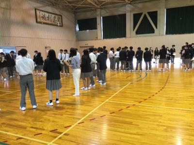 4月16日(火)のロングホーム(LH)の時間に、本校スクールカウンセラーの高 賢一先生による「1年生人間関係づくり講座」が行われました。1年生全員が第1体育館に集まり、言語を使わないノンバーバルコミュニケーションによるアサーション(自己主張)で「バースデーライン」を行い、最後は拍手でクラスの親睦を深めました。