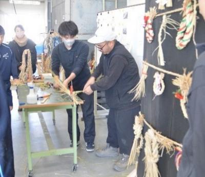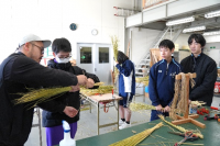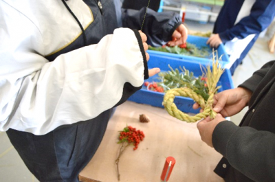 生物資源コースでは、しめ縄作り、イチゴハウス見学、