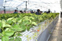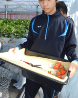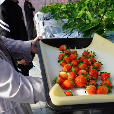イチゴの甘い香りの中で、完熟イチゴを収穫しました。