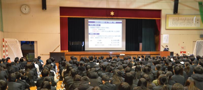 ~自転車マナーを守ろう~交通違反改訂についての説明会 投稿日時 : 12/05 広報 令和8年4月から自転車への交通反則通告制度(青切符)が導入されることとなり、 2学期末考査最終日、全校生徒を対象に、 白山警察署の石本智子氏による「交通違反改訂についての説明会」が行われました。 自転車の指導取り締まりの基本的な考え方や、 指導警告、検挙、反則金などの説明がありました。 事故を起こさない、事故に遭わないために、 ルールを守り、安全運転を心掛けましょう! Tweet {{options.likeCount}} {{options.likeCount}}