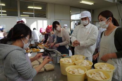 他の食品科学コースの先生方と生徒たちも補助にまわり