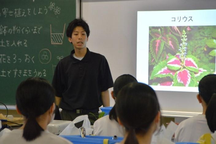 生物資源コースBでは、フラワーデザイン実習(草花の寄せ植え)、