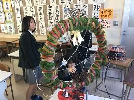 クリスマスリースの最終回は、生徒玄関に飾り付けた「大型リース」についてです。