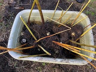 そこで、プランターをひっくり返して、球根からできるだけ土を落として運びました。