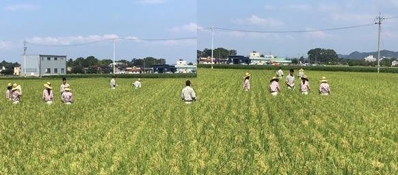 また、収穫前の水田では、より品質の良いコメ作りを目指して、雑草を抜き取っていました。