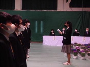 式は、鷲澤校長先生の式辞、六星同窓会 大藏会長の祝辞、在校生代表の勝田 真心さんの送辞、卒業生代表の數馬 彩菜さんの答辞と続き、3年間の思いを振り返る卒業式となりました。
