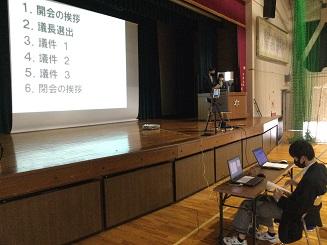 生徒会長が開会の挨拶を述べ、議長選任のあと、部活動からの報告、専門委員会からの報告、今年度の行事計画等が報告されました。