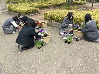 パンジーの売れ残りがたくさんあり、2年生もプランターに植えることにしました。