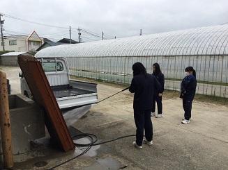 高圧洗浄機を使って、汚れをきれいに洗い流しました。