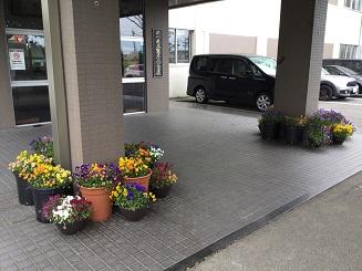 正面玄関にプランターを並べてみたものの、玄関柱の下部だけなので少し寂しい感じが・・・。