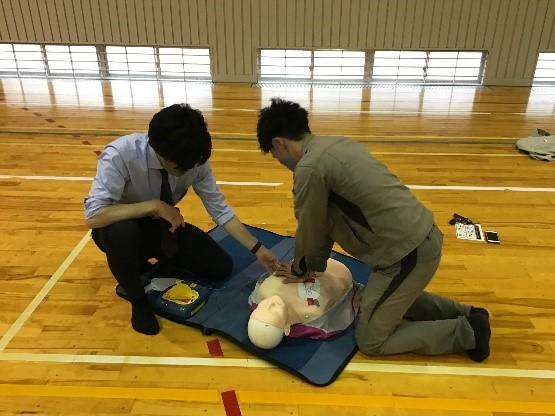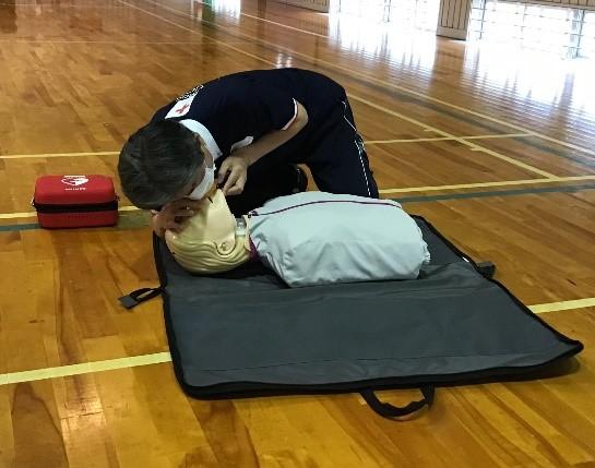 学校生活を送るうえで何も起こらないことが一番ではありますが、本校の特徴でもある広大な敷地内で救急事態が発生した際に対応ができるよう、救急に関する知識と心肺蘇生法を確認しました。