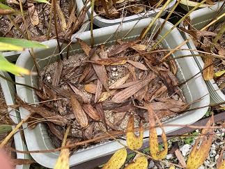 ササユリ、ヤマユリを育てていたプランターをひっくり返すと球根がでてきました。