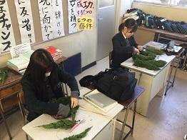 さて、「生物活用」・「園芸デザイン」の授業では、クリスマスリースの作成に入りました。