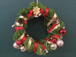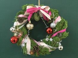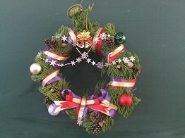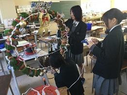 さて、クリスマスリースの第3報として、「生物活用」の授業を選択している生物資源コース園芸福祉分野3年生の生徒のみなさんの作品をご紹介いたします。