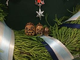 校庭から集めてきた「マツボックリ」や「ドングリ」、100円ショップで購入してきた「お飾り」でデコレーションしました。