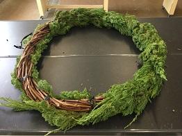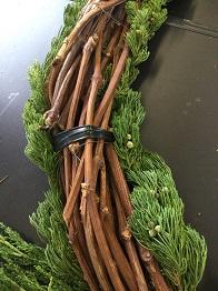 この作業を繰り返し、表側、裏側とリースの蔓が見えないようにしていきます。