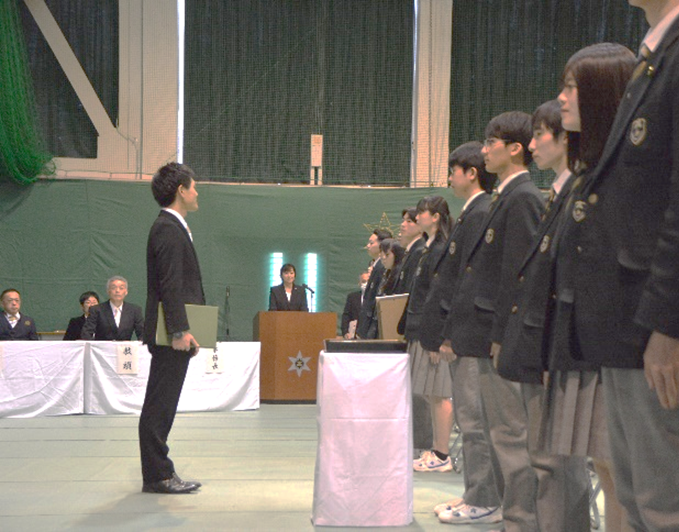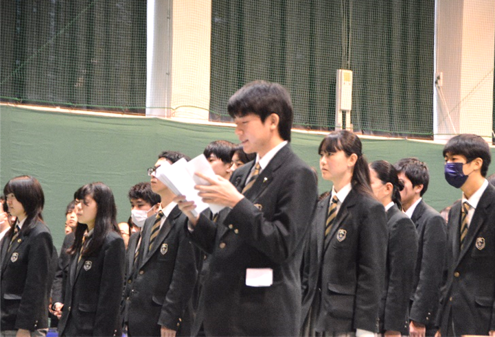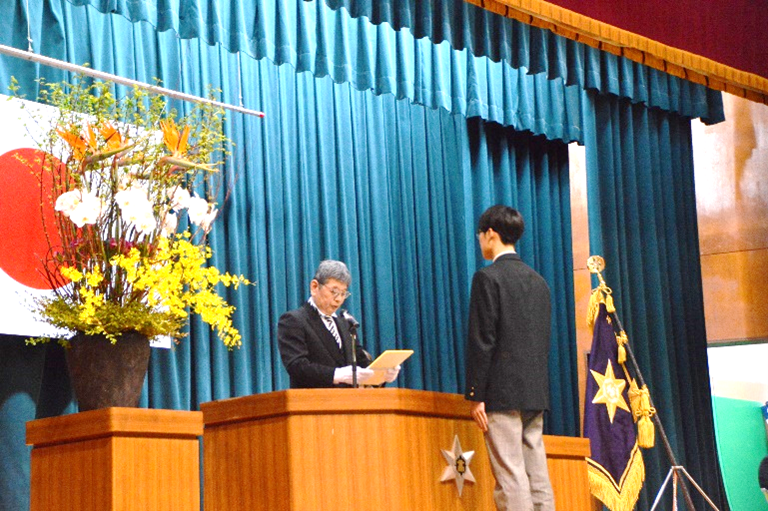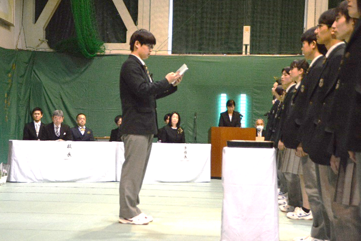 谷学校長の式辞、白山市市長 田村敏和様と六星同窓会会長 本 昌康様の祝辞、在校生代表 横井 瑛人さんの送辞、卒業生代表の吉村 春貴さんの答辞と続き、式を締めくくるように校歌が会場に響き渡り、思い出に残る卒業式となりました。