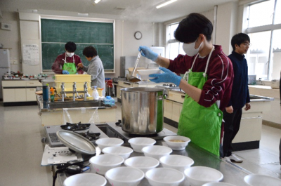 食品科学研究会が被災者の方への炊き出しのお手伝いをしました。