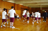 卓球場では8の字縄跳びをクラス毎男女別全員で5分間、跳んだ数で競い合いました。