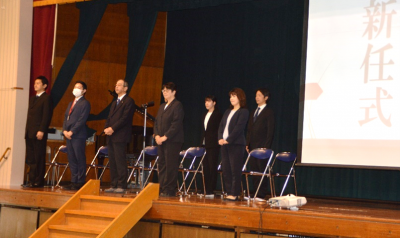 4月8日(月)、新任式から令和6年度のスタートです。 新任の先生方を代表して理科の見砂輝彦先生が挨拶されました。 新任の先生方、これからよろしくお願いいたします。