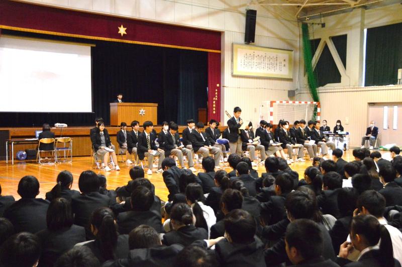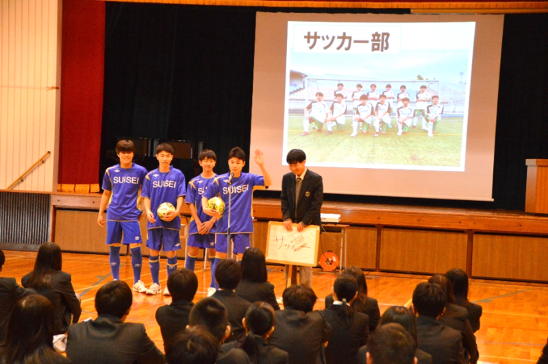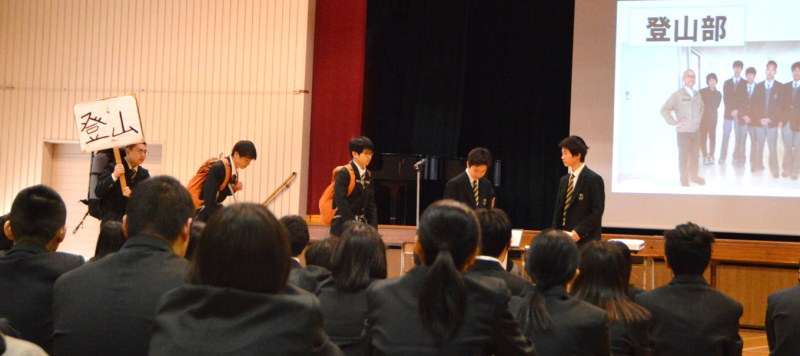 各部活動・研究会、専門委員会、生徒会の代表者がそれぞれ活動方針を述べ、