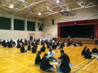 続いて始業式が行われ、谷正一校長先生の訓話の中で、 第一体育館の壁にかけられている書についてお話がありました。