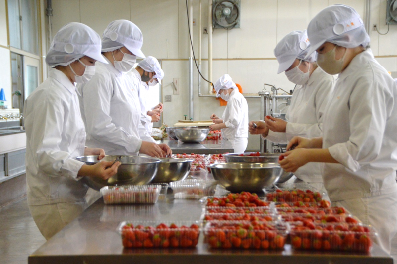傷んだ苺を除くため、かなり集中し、黙々と作業していくうちに自然とリズムが生まれ、作業も早くなっていきます。