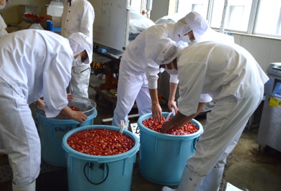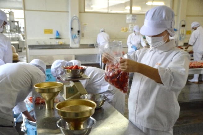 食品科学コース3年次生の総合実習の授業で、苺ジャムの製造が始まりました。
