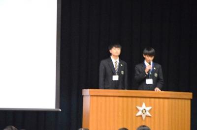 生徒総会では、31H吉川修澄さん、32H木谷公介さんが議長を務め、