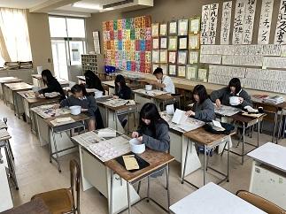3年次生の「生物活用」の授業では、押し花を作り始めました。